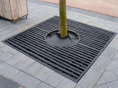 樹池蓋板主體是由二塊或四塊對(duì)稱的板體對(duì)接構(gòu)成,蓋板體設(shè)有樹孔,樹孔的周圍設(shè)有多個(gè)漏水孔。主要用于街道兩旁的綠化景觀樹木的樹池內(nèi)起到防護(hù)水土流失,美化環(huán)境的作用。有菱鎂復(fù)合、鑄鐵、樹脂復(fù)合等多種材料制作的樹池蓋板。